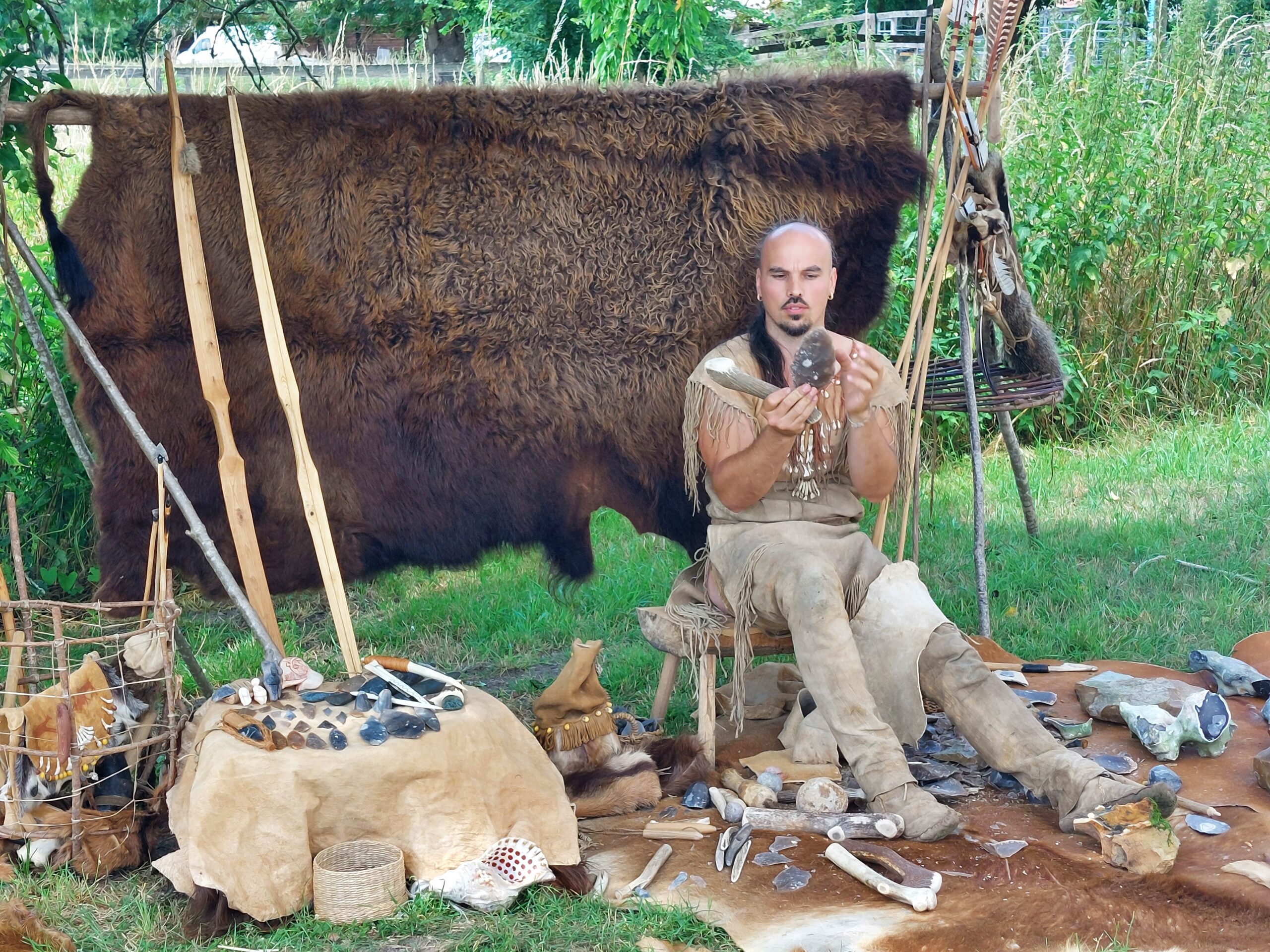 Depuis la Préhistoire, les humains expérimentent et conçoivent des objets, issus de matières naturelles, pour répondre à leurs besoins. Cette préoccupation gagne chaque civilisation du monde comme en témoignent les collections du musée. La nature est au cœur de ses inventions. Mais qu’en est-il aujourd’hui ? Sommes-nous encore capables de tirer au propulseur pour se nourrir ou de tanner des peaux d’animaux pour se vêtir ? Parcourez un véritable village de l’époque, découvrez les pratiques de nos ancêtres et questionnez-vous sur nos savoir-faire passés et présents…